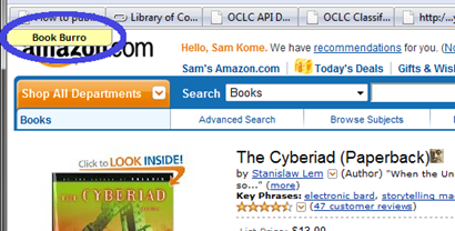 After installing Book Burro, you continue to browse the web as usual. When you visit a webpage with a book on it, Book Burro adds itself to the page.